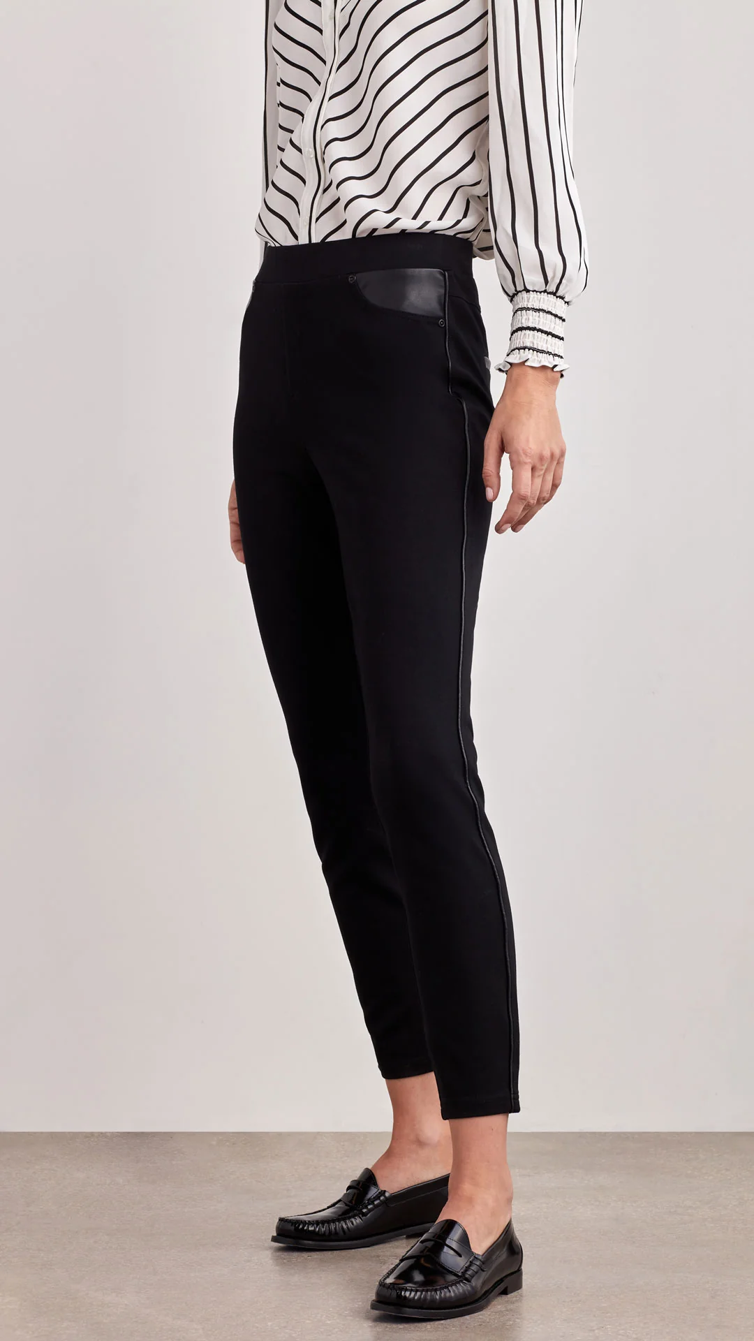 Our Pocket Detail Legging is the perfect combination of a classic legging style with just the right amount of fashion details. The faux leather trims add a modern twist for an everyday legging style with flair.