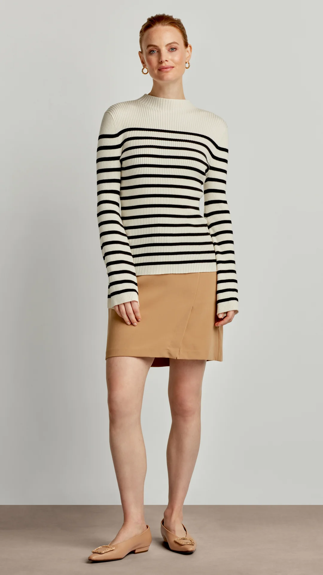 Dress to impress in this ribbed sweater with a chic mock neck and flutter sleeves for a feminine flare.
